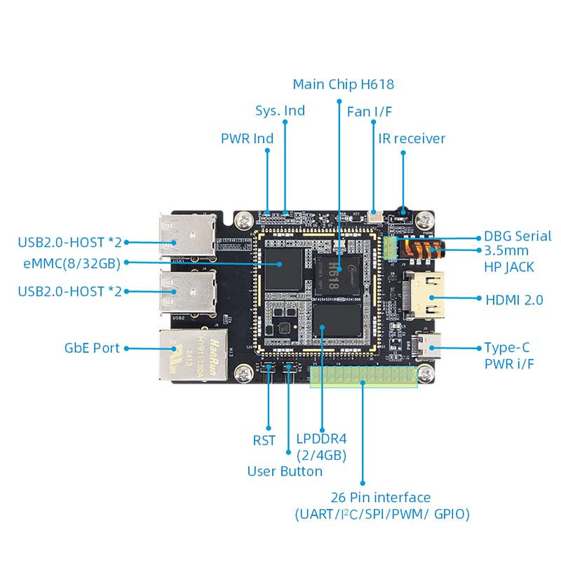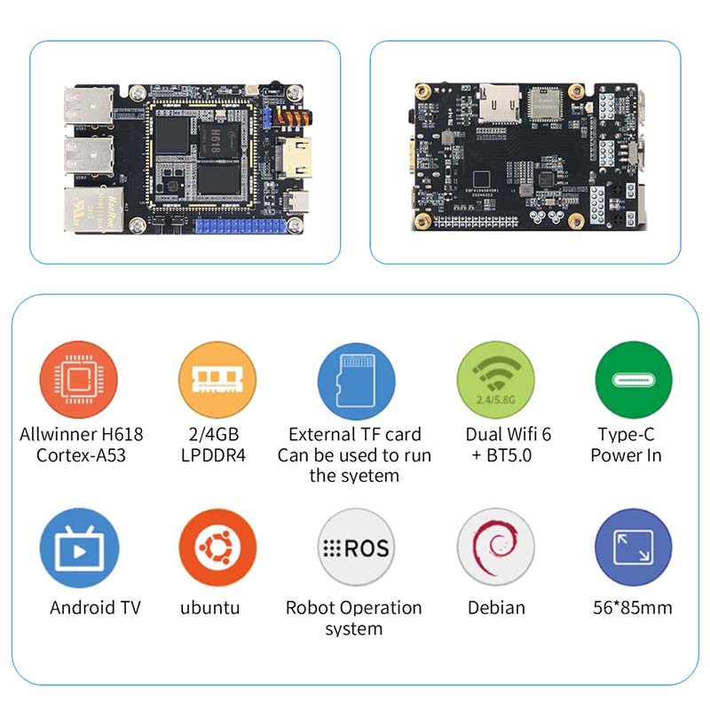 1। CPU: मुख्य चिप: Allwinner H618, - कोर-64-बिट कर्टेक्स-A53